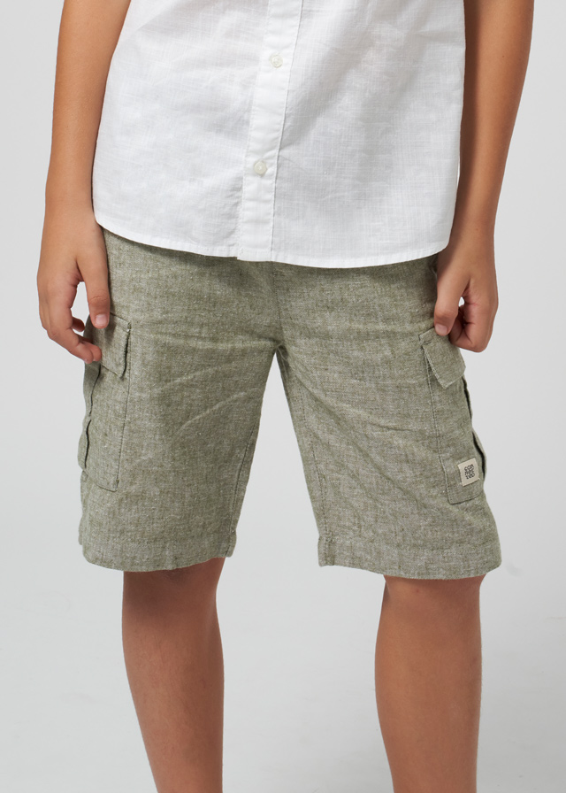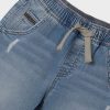Navy Blue shorts for younger boys and boys by Mayoral. Made from soft cotton, they feature the rubberized slogan on one leg, have a dual zipped pockets and single pocket at the back. Finished with an elasticated waistband and drawstring to ensure a perfect fit.