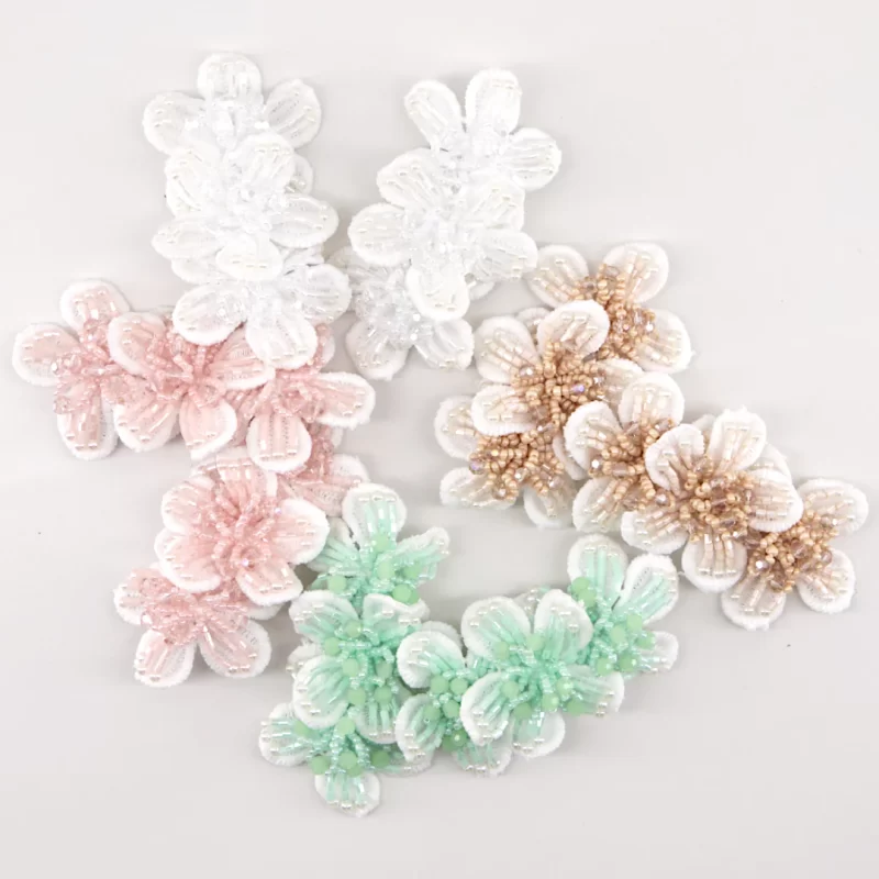 One of our classic Cary Angel Style headband styles is now available as a kid’s hair clip set.  The beautiful row of white lace daisies is hand-crafted with hand-stitched intricate pale pink pearl and crystal bead centers and petals, including tiny hand, threaded beads adding sparkle. These sweet flowers are set on an alligator clasp, easy to wear with an updo or loose hair. This designer hair accessory would be a gorgeous special occasion or flower girl gift.