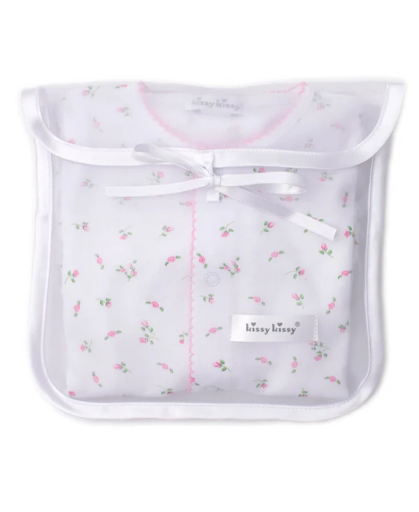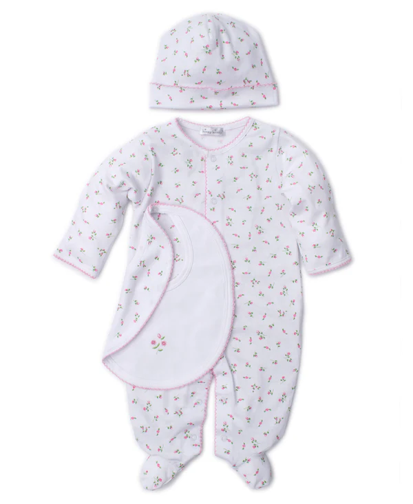 Take baby home in our rosebud printed footie set that comes complete with a matching hat and bib, all nestled inside a dainty tulle bag. The perfect gift to give or get, outfit is made from 100% Pima cotton for a soft and comfortable fit