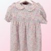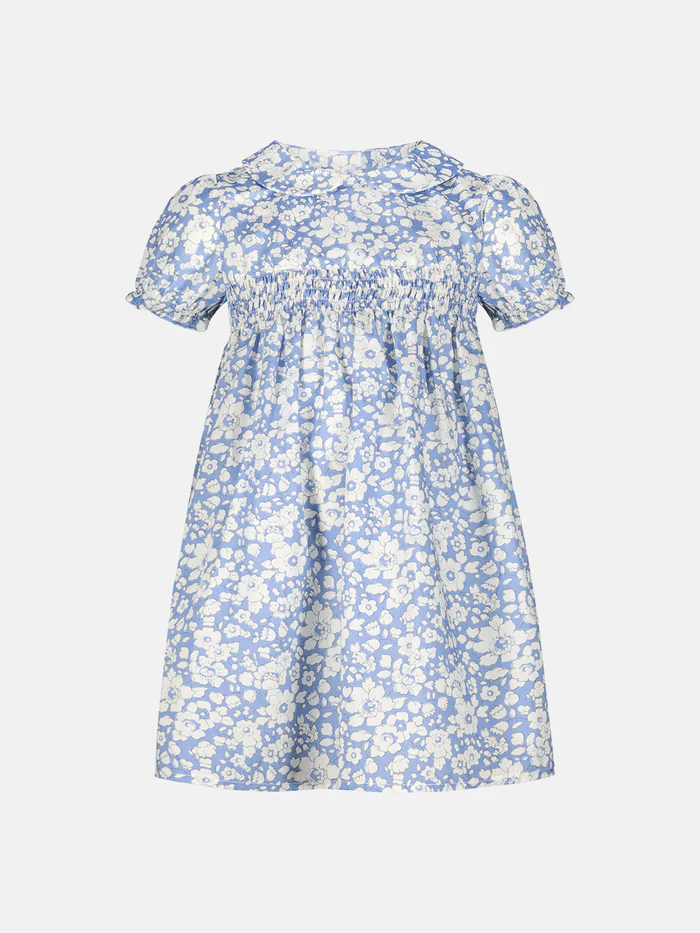 Dress with collar and smocking in 100% pure Liberty cotton. Adorned with an elegant rounded collar and smocking to offer depth and originality to the model, with classic timeless elegance.
