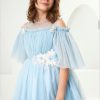 Girls in pretty mint green dress made in soft, lightweight organza. Lovely for a special occasion, the dress has delicate mesh around the neckline and flutter shaped short sleeves, a big bow at the back for a gorgeous feminine look.Fully lined in lightweight cotton for comfort, there is a net underskirt for added volume and a silver back zip fastening.