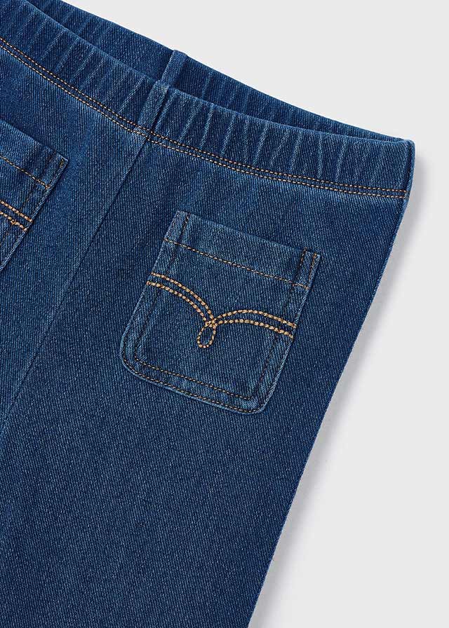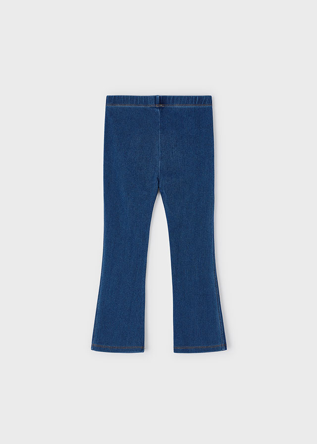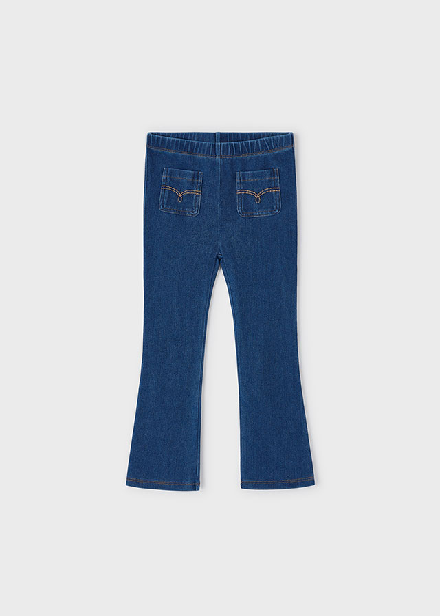 Casual blue flared jeggings for girls by Mayoral, made from a soft and stretchy cotton blend. Easy to wear, they have an elasticated waistband with stitched patch pockets detailing the front.