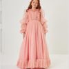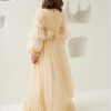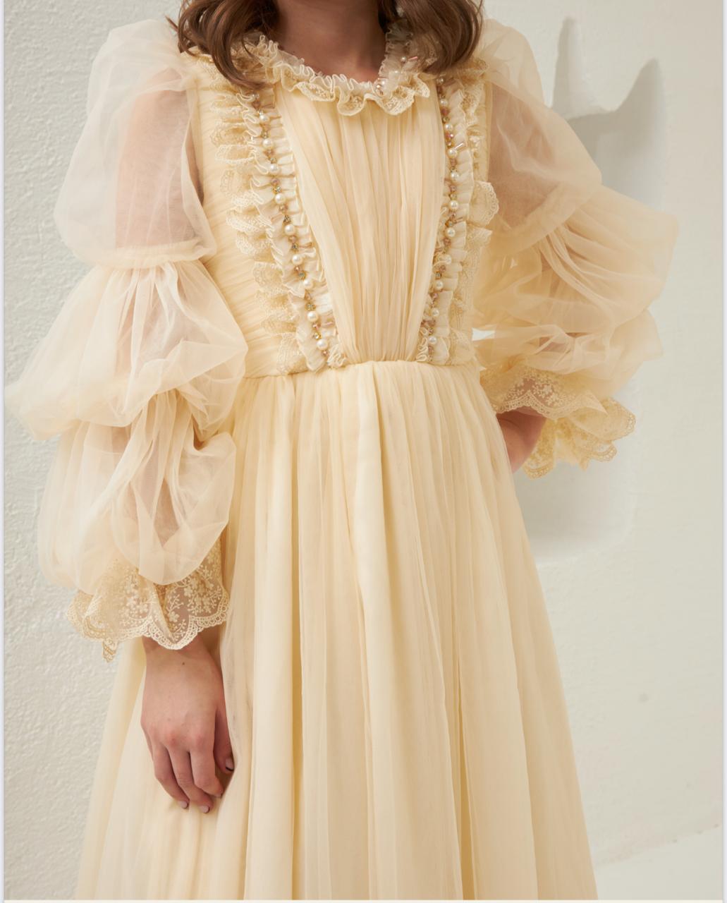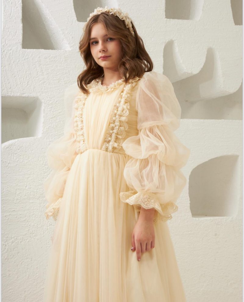 Made of high quality material,feels soft smooth stretch and sleek. Graceful tulle sleeves with charming lace designed definetely makes you look your kids eye-catching.Perfect fit for any special occassions. Delicate frilled plates and embellished with pearls for touch of luxury.This plated pattern dress is sure to be a hit with any young fashionista.