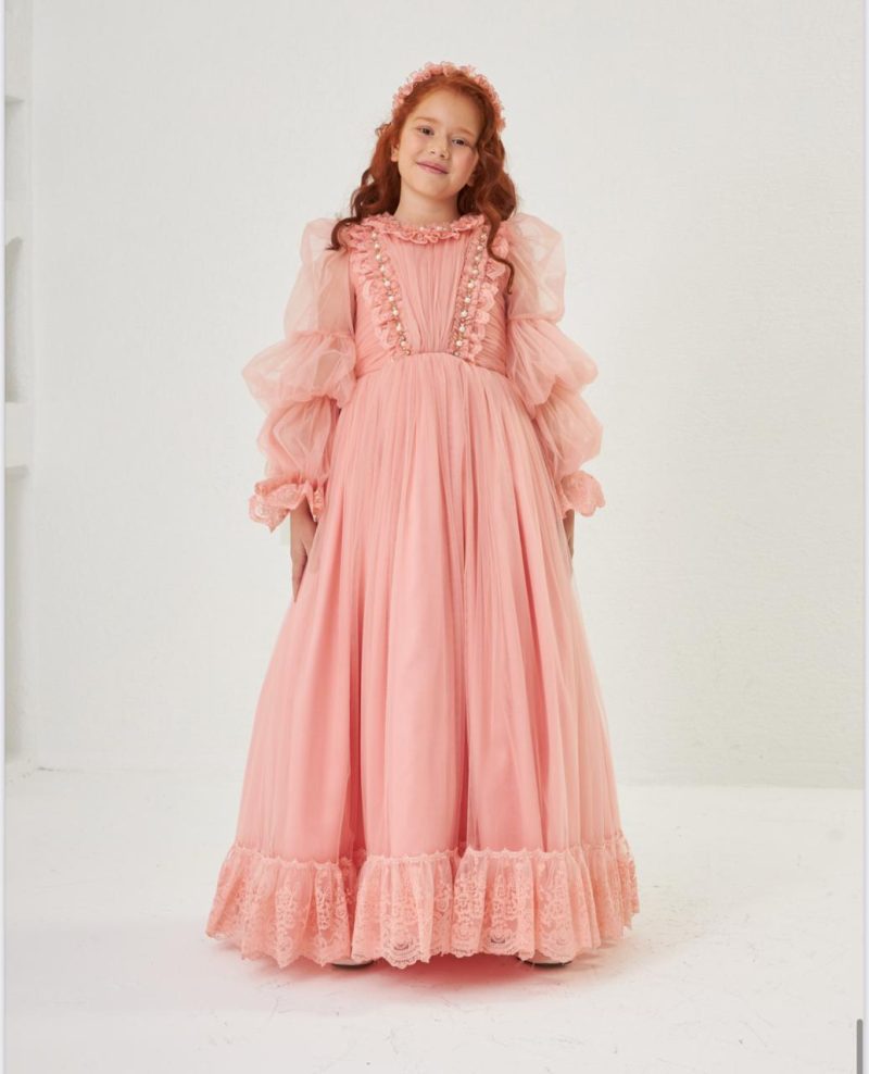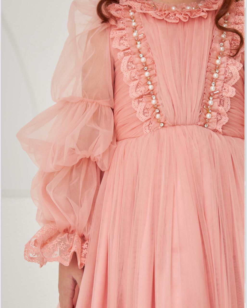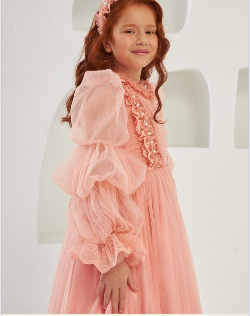 Be the first to review “LONG TULLE ELEGANT PEACH DRESS”