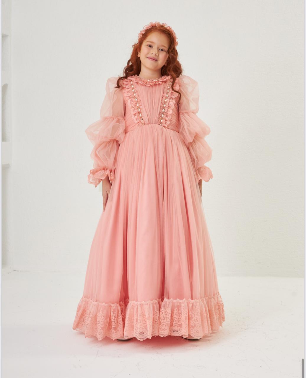 Made of high quality material,feels soft smooth stretch and sleek. Graceful tulle sleeves with charming lace designed definetely makes you look your kids eye-catching.Perfect fit for any special occassions. Delicate frilled plates and embellished with pearls for touch of luxury.This plated pattern dress is sure to be a hit with any young fashionista.