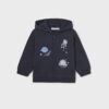 Long sleeve hoodie for baby. Hooded design. Silhouette with relaxed lines and dropped shoulders. Front, central zip fastening. Play with interactive motif, movable parts.