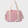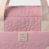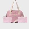 Pink changing bag from Mayoral, made in soft cotton twill with an embroidered teddy bear design. The spacious internal compartment has a pretty lining and two slip pockets. It fastens with a zip. There are useful pockets on the sides, handy for bottles and  a large popper fastening pocket on the front with an ivory logo patch. It has contrast ivory canvas carry handles, removable stroller straps and a removable shoulder strap. This versatile bag comes with a changing mat and a small, zipped pouch ideal for organising essentials.