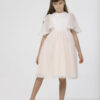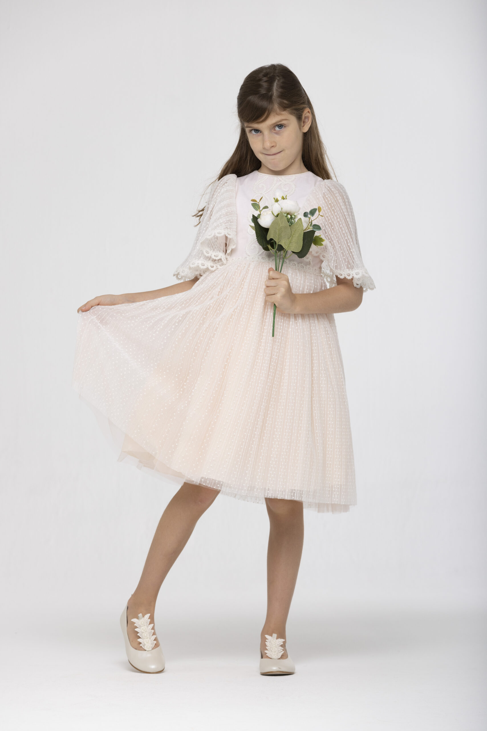 PEACH ORGANZA DRESS WITH OFF WHITE LACEa