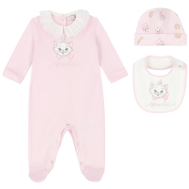 The pink hat has an all-over Marie print with turned-up hem.