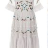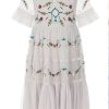 Bright flower and leaf embroidery pops against the pale, vapour blue backdrop of the lovely Polly dress. Comprising of a fitted bodice and a lightly voluminous tiered skirt, Polly is a versatile style that is guaranteed to become a staple of parties and weddings all year round!