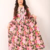 Pretty dress for little girls by Speranza. It has a pleated tulle on body and skirt with cupcake print. A red velvet on belt and off white pompoms on the sleeve.
