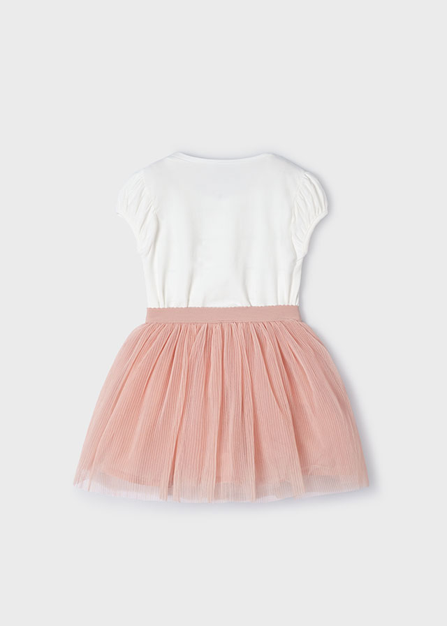 WHITE COTTON & PEACH TULLE SKIRT SET