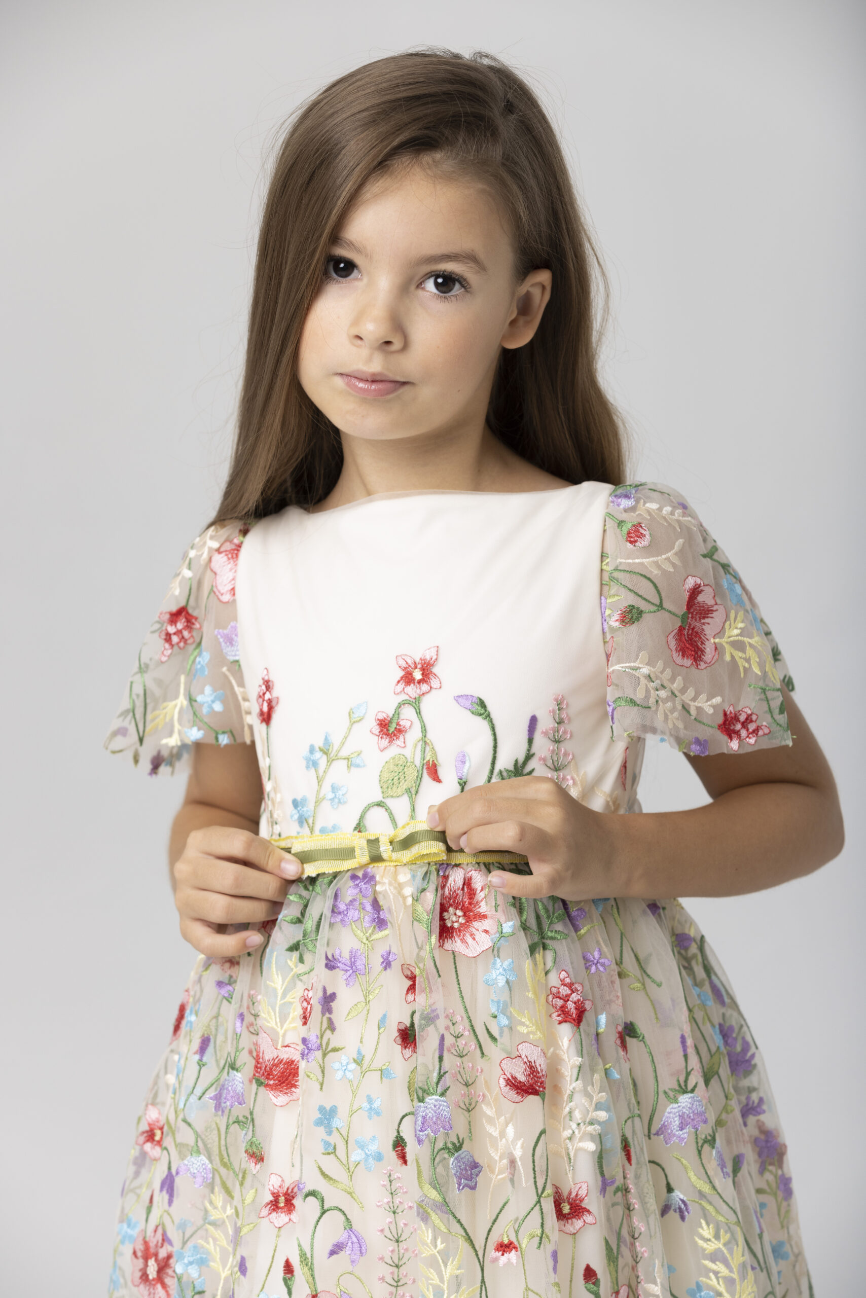 A gorgeous floral embroidery dress by Speranza. Fully lined with cotton lining and with a zip fastening at the back.