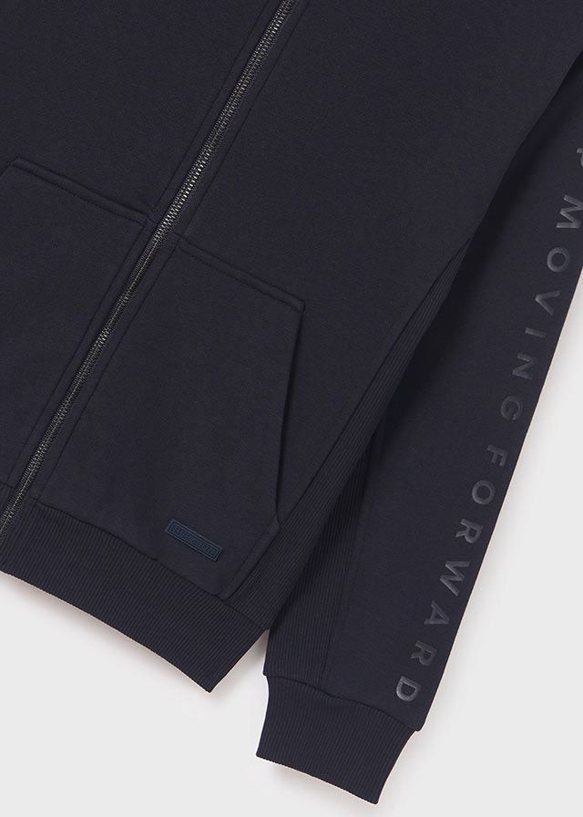 Comfortable and warm, this reversible jacket for boys is by Mayoral. The brown side is made in soft teddy fleece and has a silky panel on the chest, printed with the words ‘Level up’.